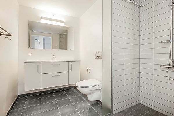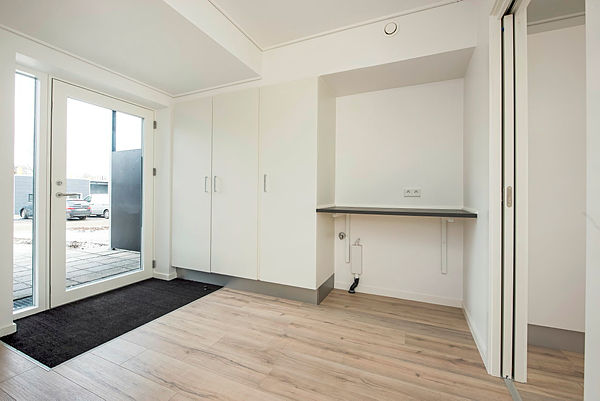 5 af boligerne er i 2 plan, og disse boliger vil have 2 private tagterrasser placeret på 1. salen.